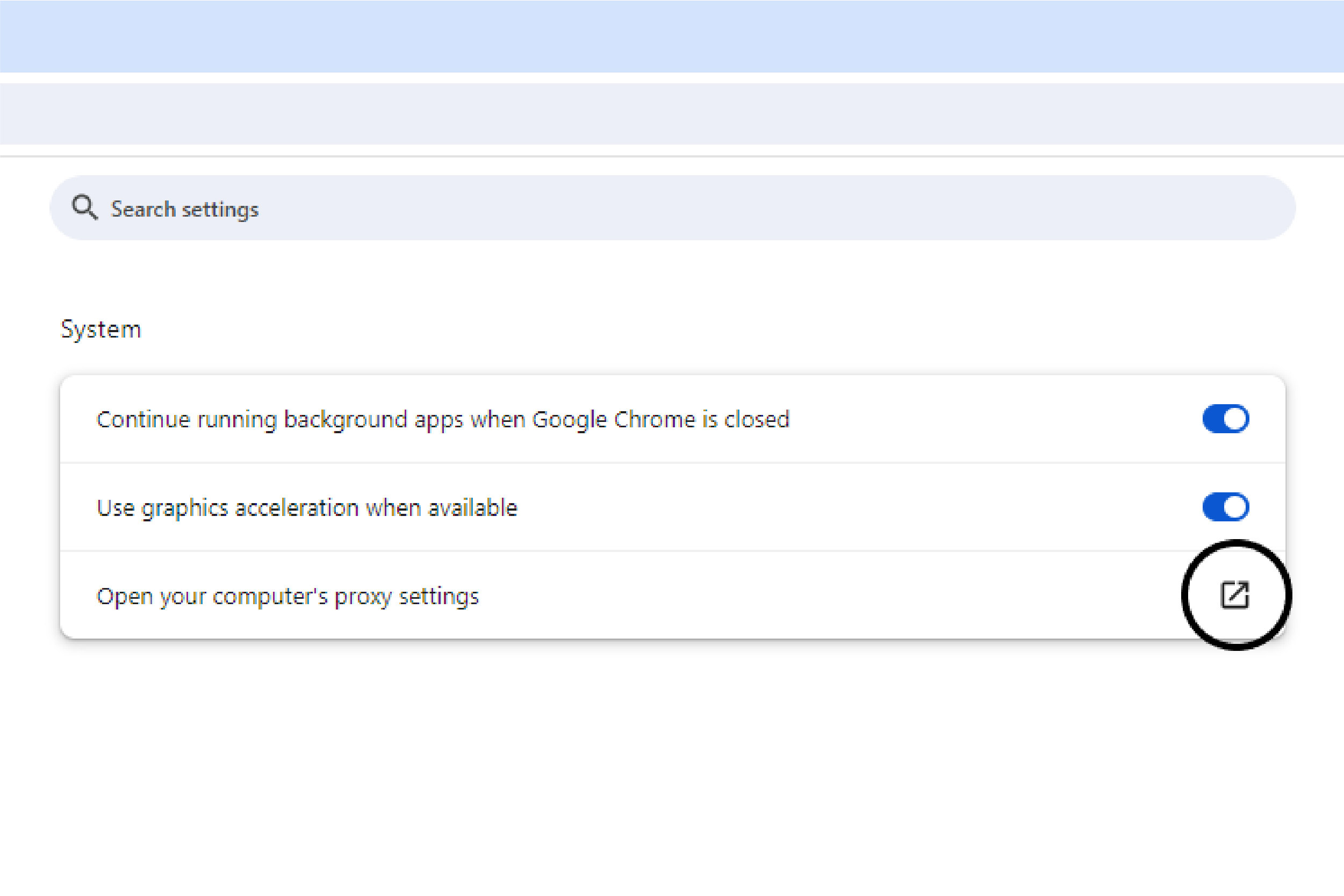 Bước 2: Cuộn chuột xuống dưới và tìm mục Hệ thống (System). Tại đây, anh em nhấn vào dòng Mở tùy chọn cài đặt proxy trên máy tính của bạn.